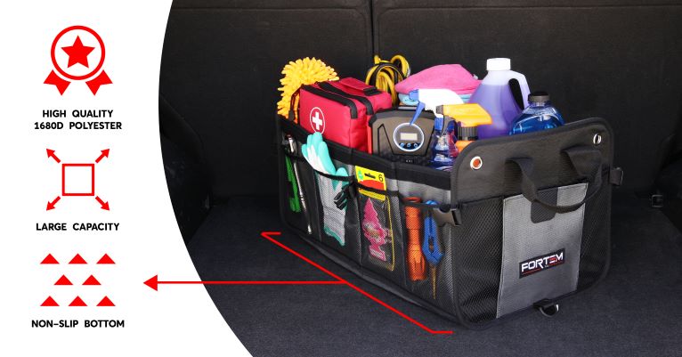 A versatile storage solution designed to keep your car's trunk neat and tidy. Constructed with durable, high quality polyester.